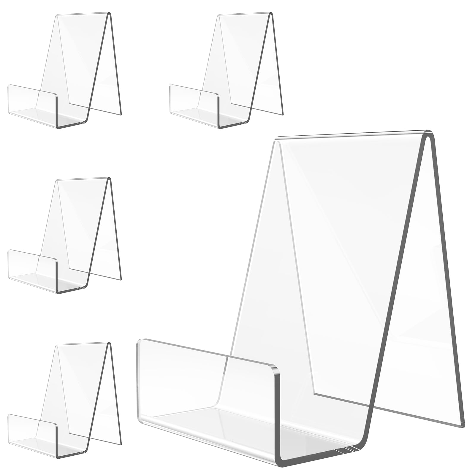 4 Pack Acrylic Book Stand, Book Holder for Display, Clear Easel Stand for Display, Display Holder for Postcard, CD, Frame, Picture, Magazine, Plate, Phone, Sticker