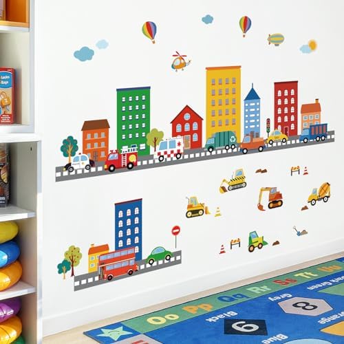 - decalmile transportation car building wall stickers are perfect to decorate kids nursery, boys bedroom, living room.
