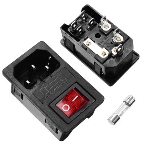 2 Sets IEC320 C14 Inlet Module Power Socket - AC 250V 10A, 4 Terminals, DPST Rocker Switch with Fuse Holder & Red Light, Panel Mount for Lab, Fitness & Industrial Equipment