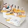Makeup Organizer Countertop with Drawer 360 Rotating Brush Holder Storage Large Capacity Skincare Cosmetic Display Cases for Vanity Bathroom Desktop, Model 3016 White