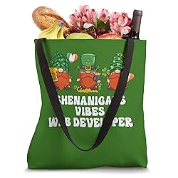 Web Developer Gnomes Funny St. Patricks Day design. Celebrate St. Patrick's Day in style with this charming and whimsical design featuring three adorable gnomes dressed in festive green attire. Celebrate St. Patricks Day Irish spirit. Cute gnomes holding lucky clovers and fun holiday accents. Ideal for work or casual wear during the St. Paddy's season. This design is sure to bring smiles and a touch of luck! 16” x 16” bag with two 14” long and 1” wide black cotton webbing strap handles. Made of a lightweight, spun polyester canvas-like fabric. All seams and stress points are double-stitched for durability, and the reinforced bottom flattens to fit more items and hold larger objects. Spot clean/dry clean only.