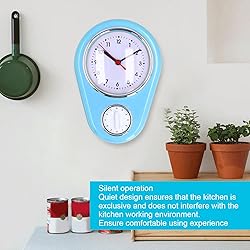 【QUIET OPERATION】The silent design of this retro wall clock ensures that it is dedicated to the kitchen and will not interfere with the kitchen working environment, ensuring a comfortable use experience. 【CLEAR DISPLAY】The 9-inch retro kitchen clock has a large area, displays the time clearly, is easy to read, and is convenient for controlling time when cooking in the kitchen. And our innovative and iconic retro colors are designed to bring a touch of fun to any room. 【ACCURATE TIME】Quartz clock movement ensures accurate time, accurately displaying hours, minutes and seconds, no longer worry about time errors. It can also be your little assistant when you make delicious food. 【SIMPLE AND STYLISH APPEARANCE】The kitchen timer wall clock has a simple and innovative retro appearance design, suitable for various home decoration , adding fashionable elements to your home and bringing the charm of 60 years ago. 【EASY TO OPERATE】The kitchen timer wall clock is easy to operate, equipped with simple and clear setup buttons, which makes it easy to get started even for the first time.