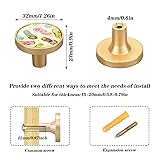STRONG MATERIAL: Cabinet pulls are made of zinc alloy, with fashionable and bright patterns printed on the surface, making the cabinet door knobs rust and corrosion-resistant, ensuring durability. SIZE: Heavy round cabinet knobs measure 1-1/4 inches (32 mm) in diameter at the top, 0.6 inches (4 mm) in diameter at the bottom, and protrude 0.9 inches (23 mm) from the cabinet door or drawer front. EASY INSTALLATION: Cabinet door knobs have a single hole that easily installs into pre-drilled holes with mounting screws. 4 cabinet knobs include 4 short 0.86 in. screws and 4 1.18 in. expansion screws. WIDE RANGE OF APPLICATIONS: Gold cabinet knobs with vibrant patterns are designed with soft, clean lines to bring a sophisticated look and high-quality touch to kitchen cabinet doors and drawers, bathroom and laundry room cabinets. TWO KINDS OF SCREWS: equipped with two kinds of screws, 2.2cm length ordinary screws, can be used for drawers, cabinets, 3cm length expansion screws, can be nailed to walls, tiles and other wall surfaces, to do decorative, hooks to use.