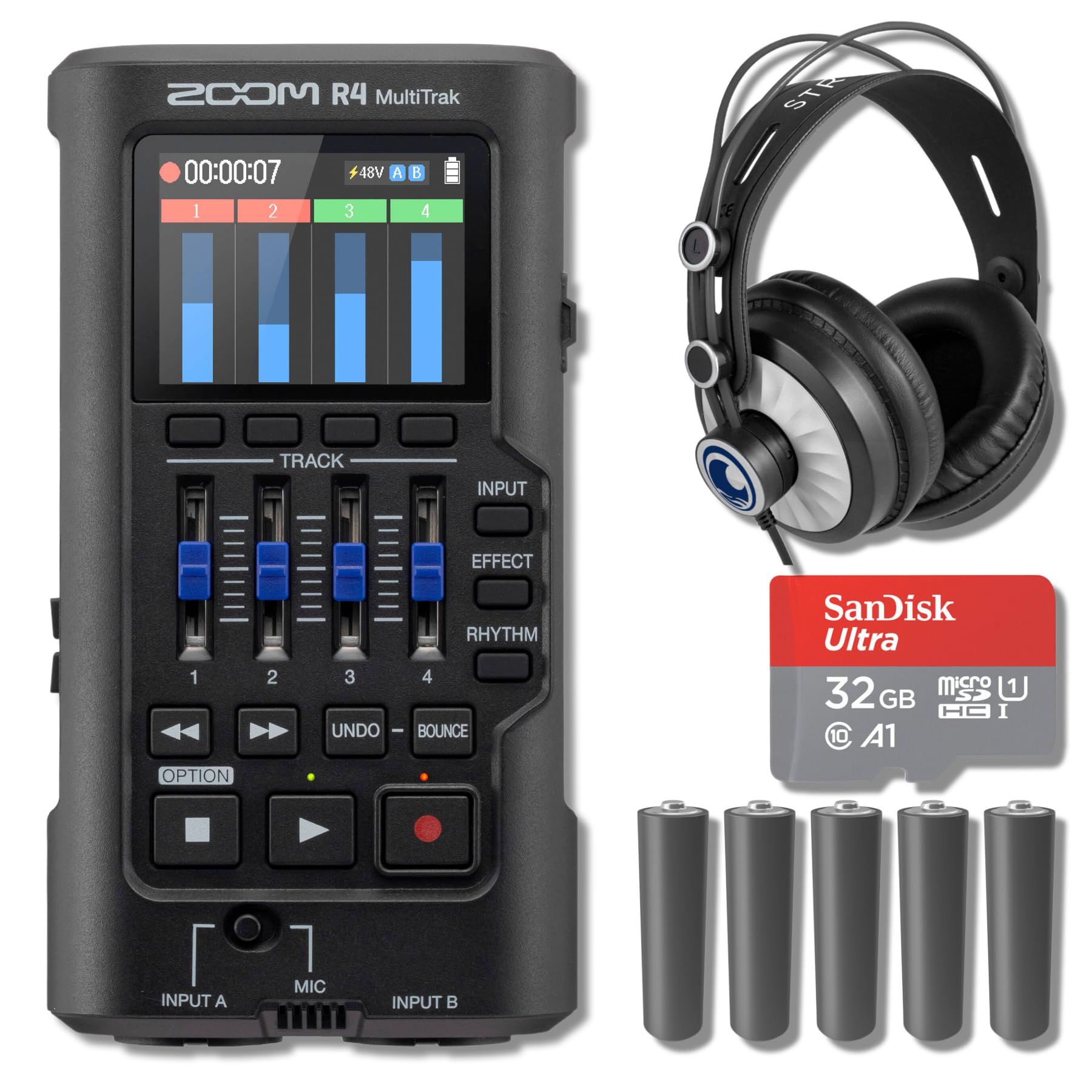 Zoom R4 MultiTrak 32-Bit Float Digital Recorder and USB Audio Interface with StreamEye Cans50, AA Batteries and 32GB microSD Card