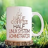 Linux System Administrator Mug - Half Coffee Half Linux System Administrator Gift 11oz White Ceramic Mug for Retirement, Daddy, Dad, Papa, Christmas, Thanksgiving, Coffee's Day, Father's Day
