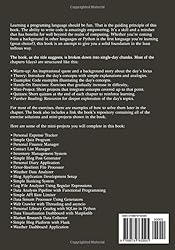 - Python: One Day at a Time This is the book I always wanted when I was learning to code. In software development, if you can't find what you're looking for, you build (or in this case write) it yourself. Whenever I am considering what to spend my discretionary time on, I always consider three things. It this fun, useful, profound. My hope is that this format will resonate with you as well on one or more of these criteria. Learning a programing language should be fun. That is the guiding principle of this book. The ability to write code is amazingly empowering. It’s a skill and a mindset that has benefits for well beyond the realm of computing. Whether you’re coming from a background in other languages or Python is the first language you’re learning (great choice!), this book is an attempt to give you a solid foundation in the least tedious way. The book, as the title suggests, is broken down into single-day chunks. Most of the chapters (days) are structured like this:Warm-up: An inspirational quote and a background story about the day’s focusTheory: Introduce the day's concepts with simple explanations and analogies.Examples: Code examples illustrating the day's concepts.Hands-On Exercises: Exercises that gradually increase in difficulty, using real-world problems when possibleMini-Project: Short projects that integrate concepts covered up to that point.Quizzes: Short quizzes at the end of each chapter to reinforce learning.Further Reading: Resources for deeper exploration of the day's topics. For most of the exercises, there are examples of how to solve them later in the chapter. The book also includes a link the book’s repository containing all of the exercise solutions and mini-projects shown in the book. Here are some of the mini-projects you will complete in this book:Personal Expense TrackerSimple Quiz ProgramPersonal Finance ManagerContact List ManagerInventory Management SystemSimple Blog Post GeneratorPersonal Diary ApplicationError-Resilient File ProcessorWeather Data AnalyzerBlog Application Development SetupSimple Banking SystemLog File Analyzer Using Regular ExpressionsData Analysis Pipeline with Functional ProgrammingSimple API Rate LimiterData Stream Processor Using GeneratorsWeb Crawler with Threading and asyncioPersonal Library Catalog with SQLite in PythonData Visualization Dashboard with MatplotlibMarket Research Data CollectorSimple Blog Platform with FlaskWeather Dashboard Application