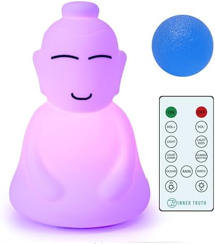 - HOW TO USE IT – Press the power button to turn the Breathing Buddha on and to select a Night Light color of your preference. Use the remote control to explore other functions: 1) 4 7 8 Light Guided Meditation: Inhale when Buddha is green, hold your breath when it's purple, and exhale when it's blue. 2) Countdown Mode: 4 7 8 breathing guided by light and the voice of the Buddha. 3) Guided Breathing Mode: 4 7 8 meditation guided by light and the breathing sounds of the Buddha. 4) 4-4 Kids and Beginner’s Mode: when the Buddha is green, inhale for 4 seconds; when the Buddha is blue, exhale for 4 seconds. 5) White Noise Mode: select rain, birds, or ocean.