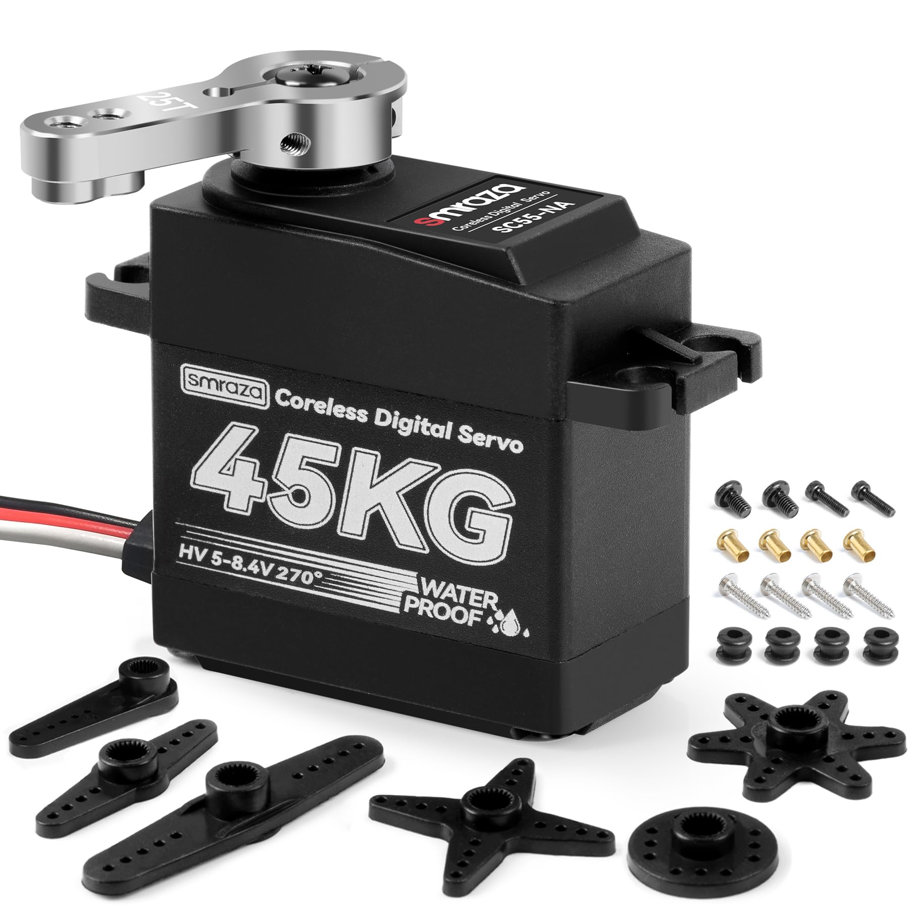 Smraza 45KG Coreless Servo Motor High Torque Steering: 2pcs 8.4V Waterproof Servo Digital Full Metal Gear Servo for RC 1/10 1/8 1/12 Scale Car Truck Crawler/Robot/Boat with 25T Servo Horn(180°×2)