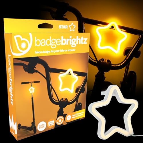 Brightz BadgeBrightz Star Shaped LED Bike Light - Cute Bike Accessories for Girls, Boys & Adults - Cool Accessory for Bikes & Scooters - Easily Attaches to Frame or Handlebar - 4.75-inch