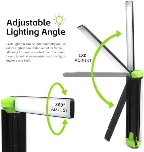 - Adjustable Lighting Angle: Each light bar can be independently adjusted for angle when folded out of its frame, allowing for precise control over the direction of illumination, ensuring optimal lighting for every task.