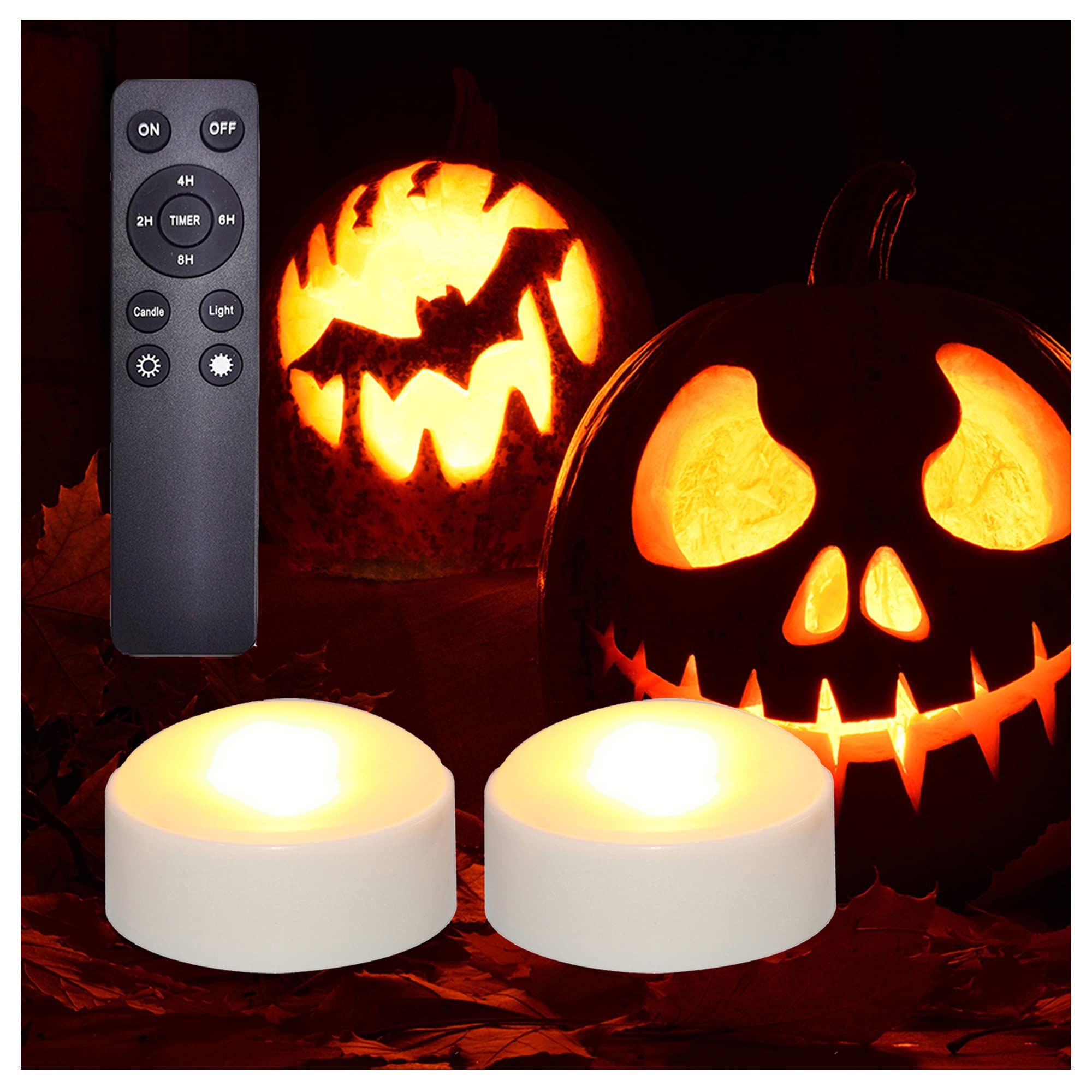 - 【Safe to Use】 Battery operated flickering LED flameless candle light, never burn your pumpkin and cannot be blown out by wind. No risk of fire, no Fume, no Mess, no Dripping Wax and no Smoke. Safe around homes, safe for families with pets, seniors, kids and young children.