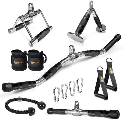 LAT Pulldown Attachments Combo, Cable Machine Accessories with Curl Pulldown Bar, Fit Most Gym Machines, Made of Heavy Duty Solid Steel