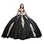 Youjiayi Gold Appliques Quinceanera Dresses with Train Puffy Tulle Beaded Sweet 16 Dress Off Shoulder Beaded Long Ball Gown