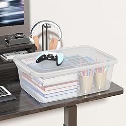 Quickquick 14 Quart Clear Plastic Storage Bin, Plastic Latching Containers with Lids, 4 Packs