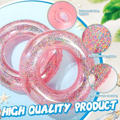 - Package Bulk: each package comes with not 2 pcs inflatable pool float tubes with glitter, double the fun at your swimming pool, you can share the joy with a friend or reserve an extra inflatable ring for another day, and whether you're planning a summer pool party, beach vacation, lake, river or beach travel, or recreational swimming exercise, our confetti swim ring toys are sure to make every water event memorable
