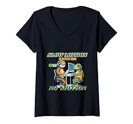 Womens Funny computer science programmer coding sloth turtle slow V-Neck T-Shirt