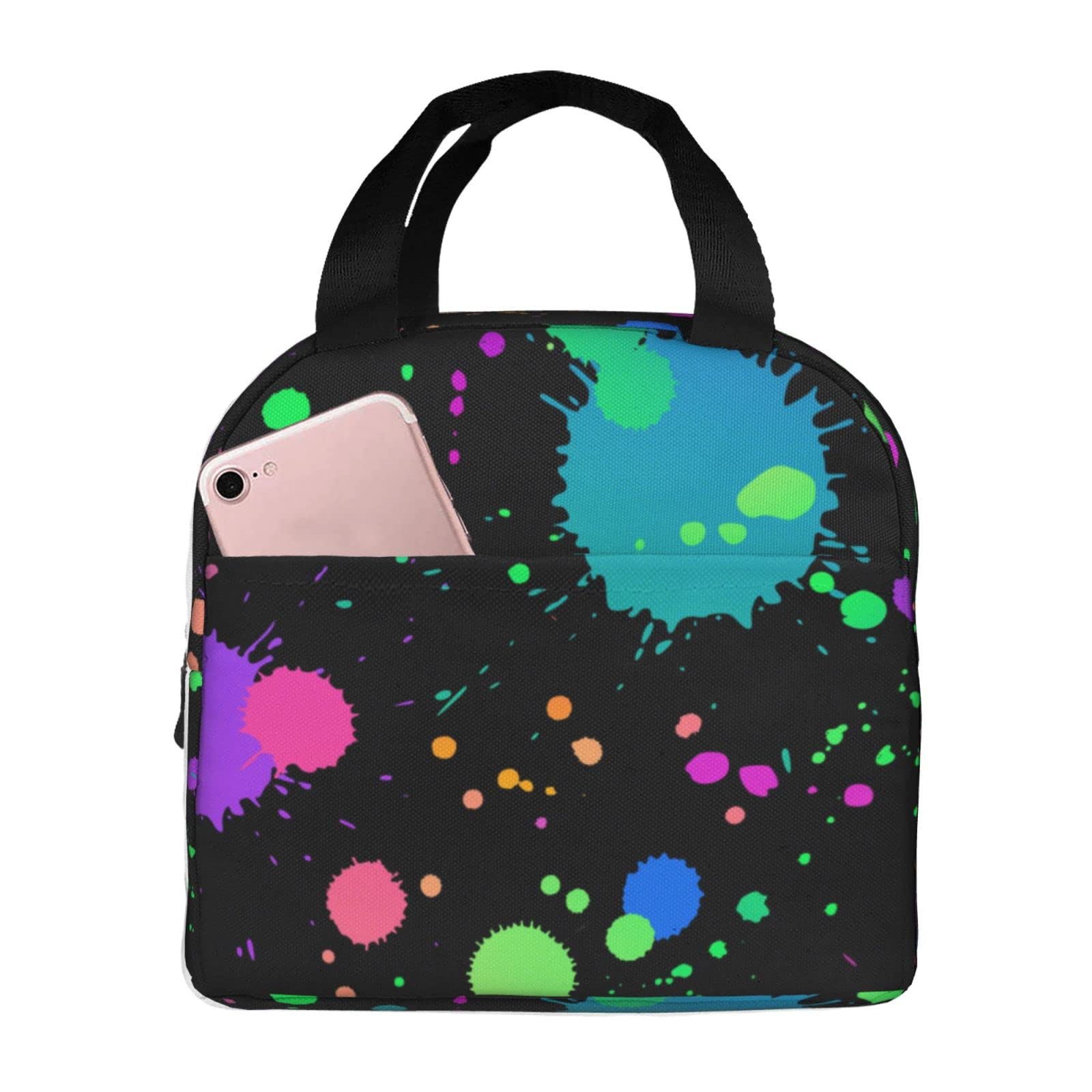 Glow in Dark Splatter Neon Insulated Lunch Bag for Men Women Travel Picnic Work Reusable Portable Cooler Tote Box Bags with Pocket