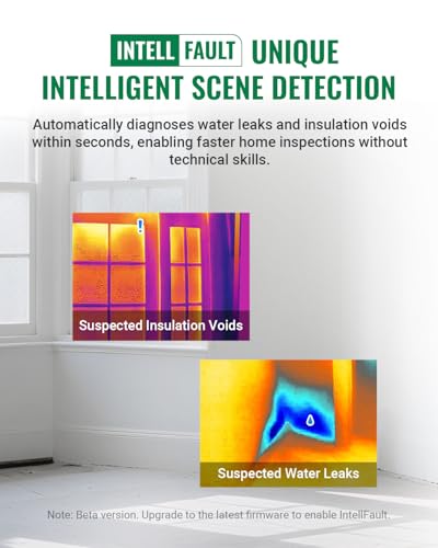 - 【Intelligent Scene Recognition with IntellFault】Featuring HSFTOOLS' unique IntellFault technology for automated scene detection. Powered by deep learning, it swiftly identifies water leaks and insulation gaps, which makes thermal inspections simpler, faster and more reliable. Download latest firmware on HSFTOOLS Website to upgrade and select "Scene" in the setting to experience it. Note: No moisture readings.