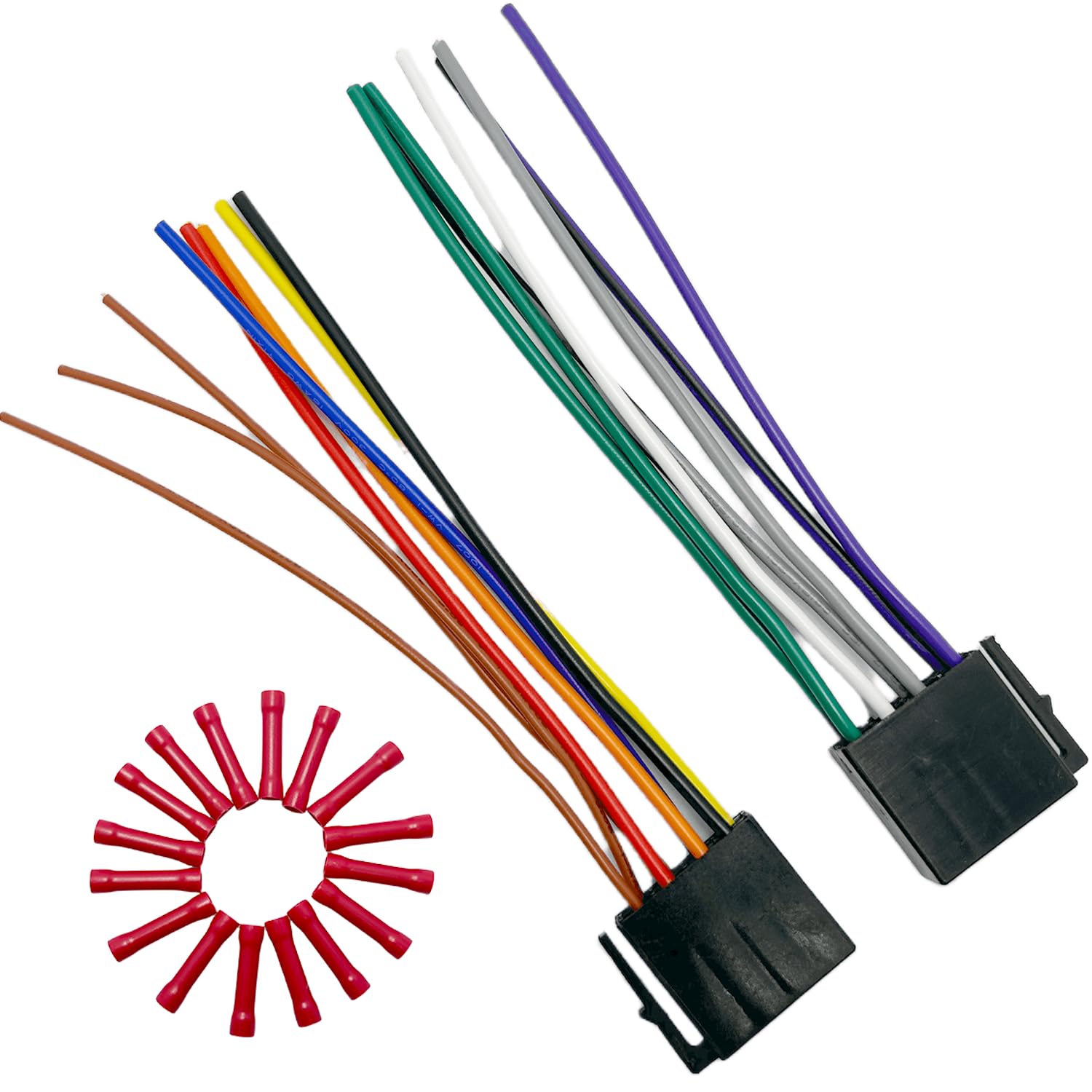 - Radio Wire Harness for Car ISO Stereo: Compatibility with universal iso car audio video player, fits for most car CD, DVD, MP3, MP5 player with 16 Pin power socket; Packing List: 1 x 8Pin Speaker Wiring Harness, 1 x 8Pin Power Wiring Harness, 16 x Butt Connectors;