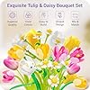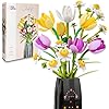 Building Block Flower Bouquet Set, 1250 Pieces, Artificial Tulips and Daisies with Vase, Home Decor Gift