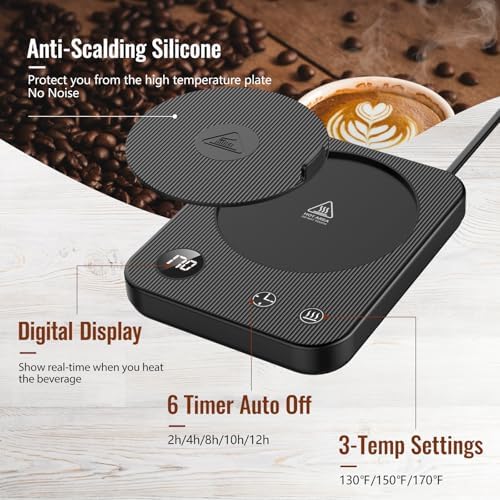 Mug Warmer,3-Temp Settings Coffee Mug Warmer,Automatic Shut Off Coffee Warmer,Mug Warmer for Desk with Anti-Scalding Silicone,Portable Coffee Cup Warmer,Coffee Warmer for Desk Suits for Various Mugs