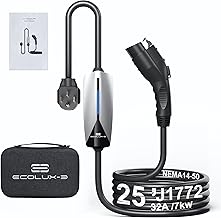 - Extended 25FT Cable Length: With an impressive 25-foot cable, our portable ev charger offers increased flexibility and convenience, allowing you to reach your vehicle's charging port with ease, even in larger garages or parking spaces