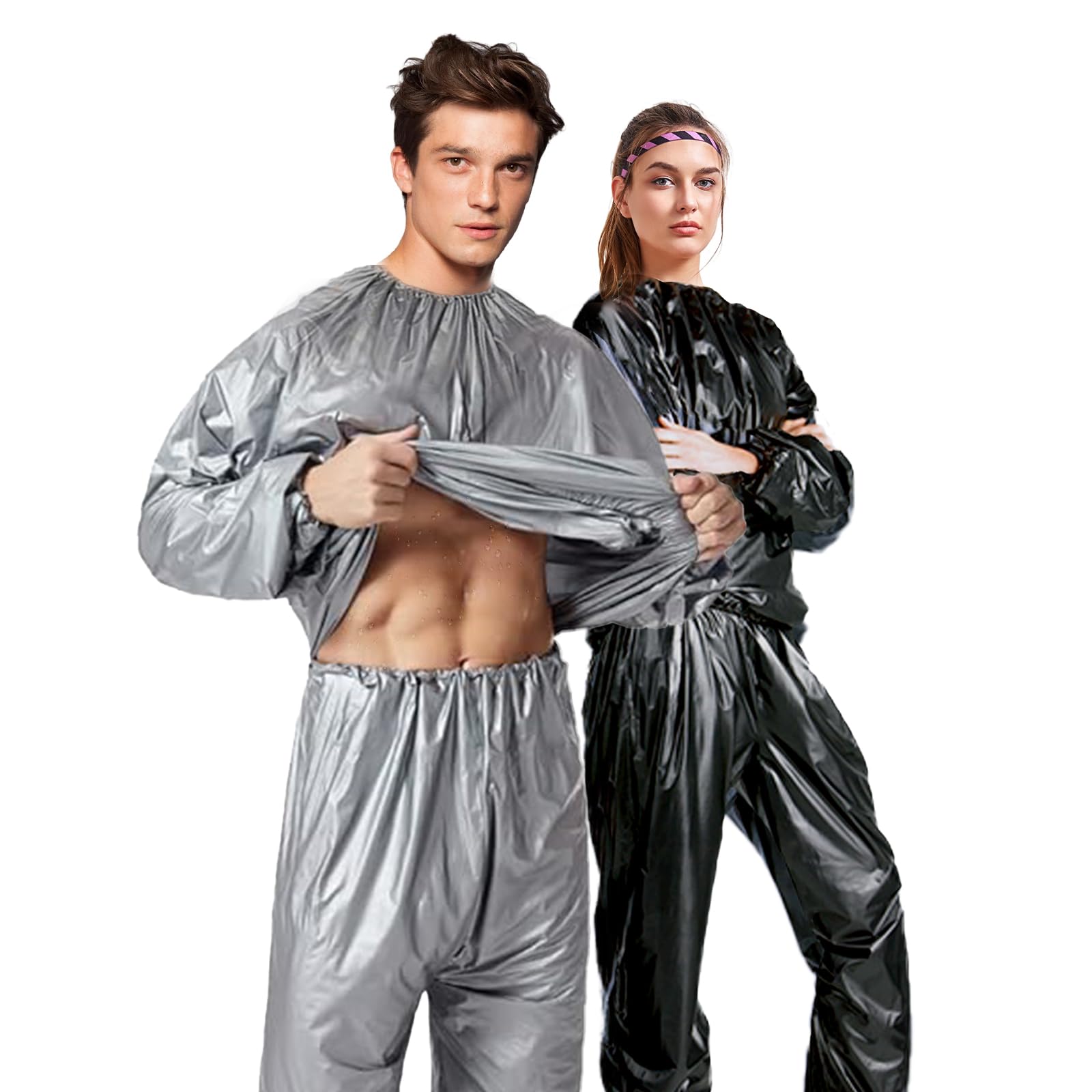Heavy Duty Sauna Suits for Women Men Weight Loss Exercise 2 Piece Transparent Sweat Suit
