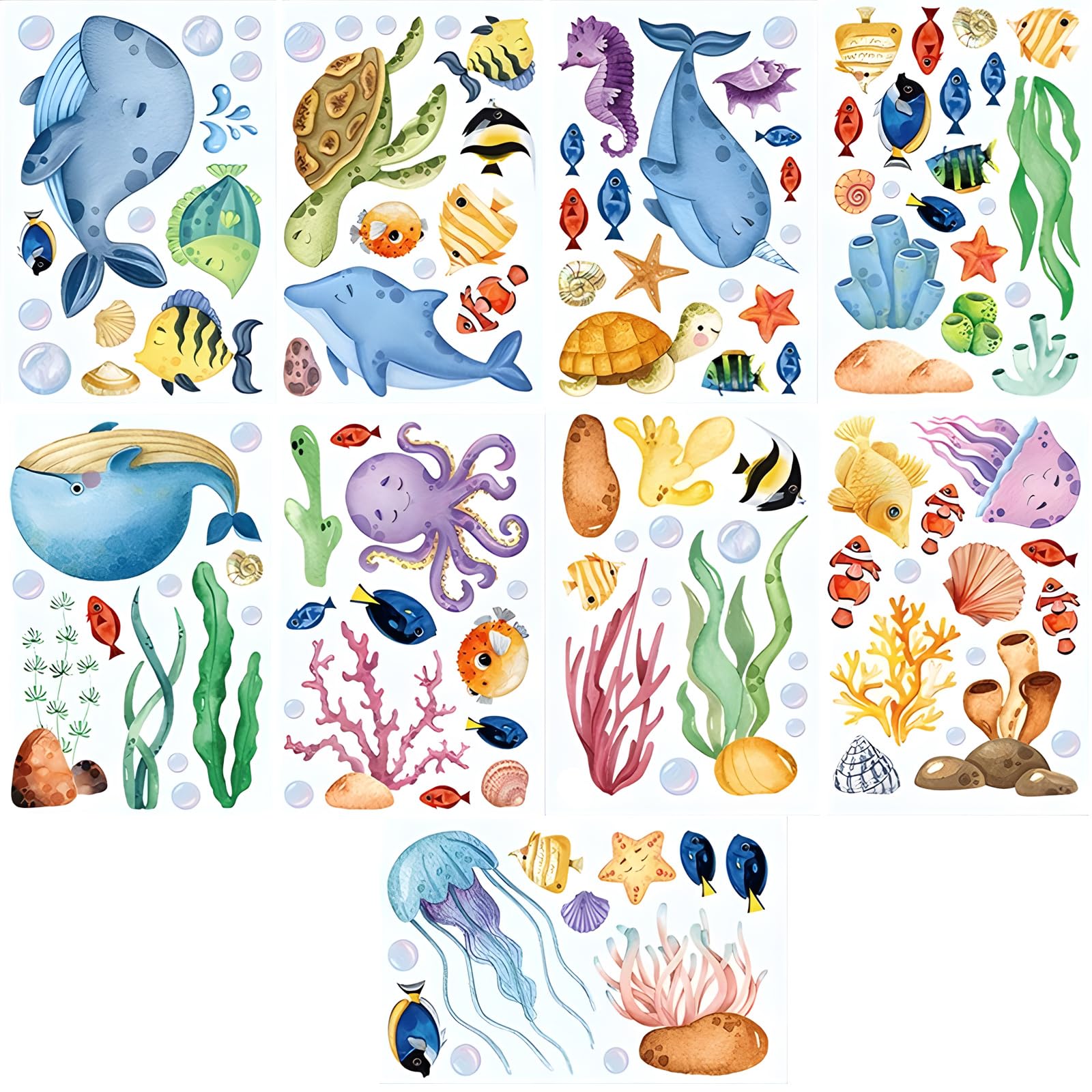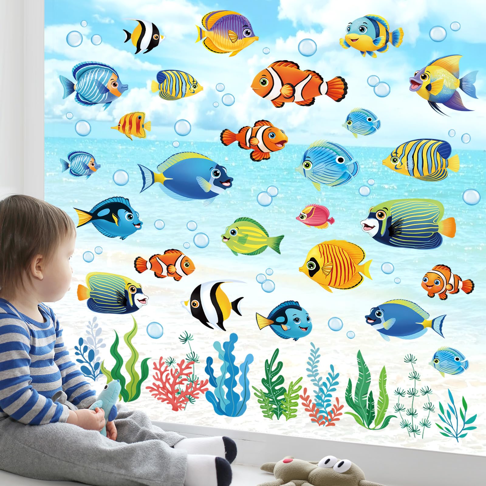 Ocean Window Clings - Summer Fun and Colorful World Oceans Day Stickers With Mermaids, Fish, Whales and More Sea Creatures for Kids Fish Tank, School, Home Office, Bathroom