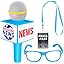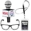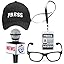 Yewong Kids Journalist News Reporter Costume Accessories Set Press Cap Pass Microphone Prop Costume Glasses for Career Day Party