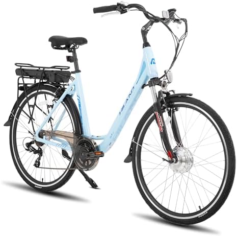 HH HILAND Electric City Bike with 500W Motor, 550Wh Battery, Max Speed 35MPH, Comfortable 27.5"" Wheels, 8-Speed Gear System, Aqua