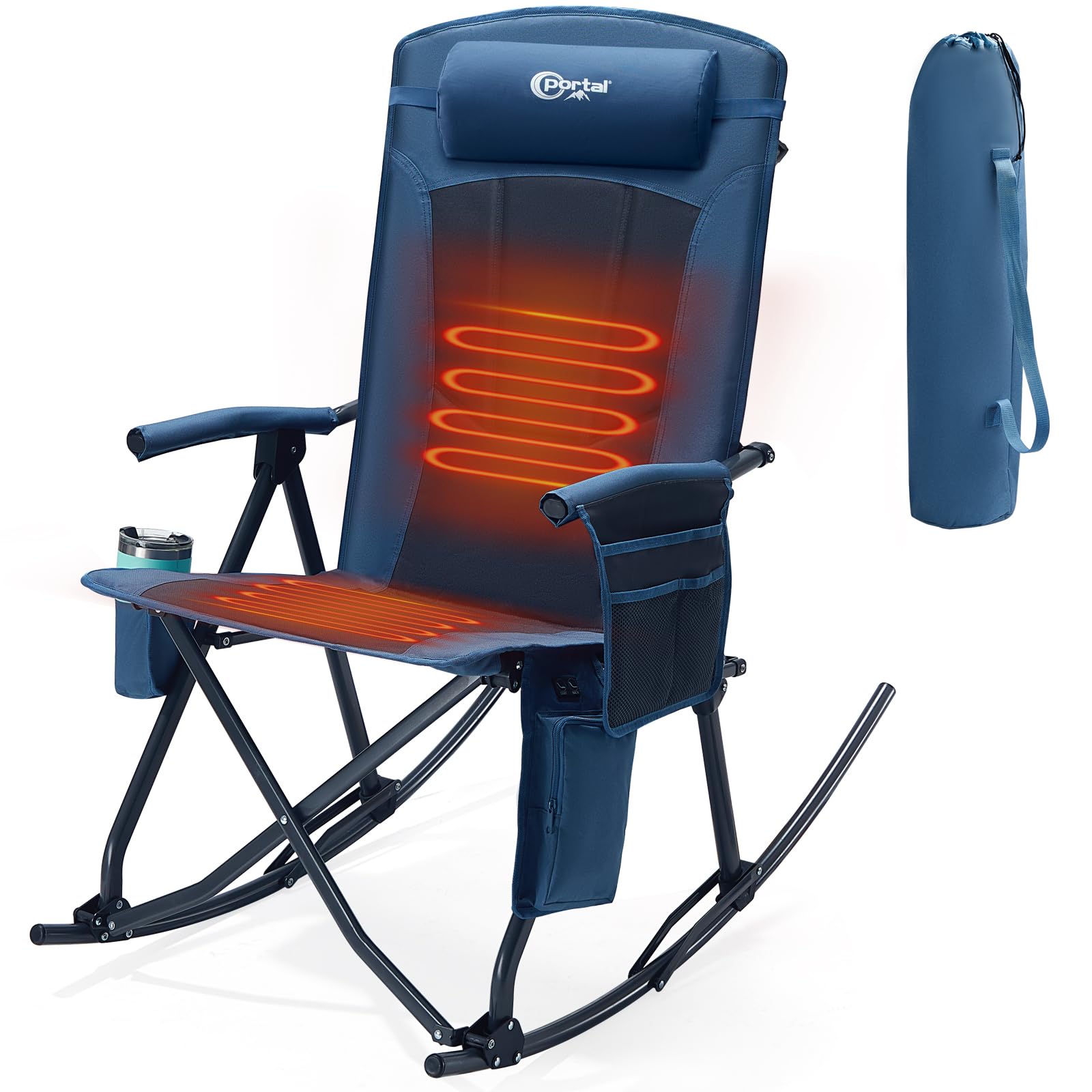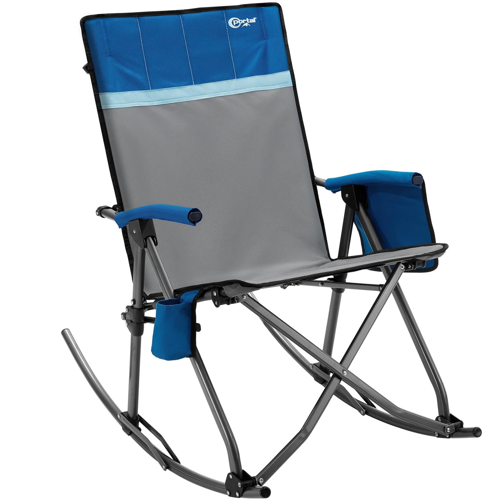 Portal Folding Rocking Chair Indoor & Outdoor Thick Padded Rocking Recliner Chair Portable Camping Rocker for Patio Front Porch Backyard Lawn Living Room, Supports 400 LBS