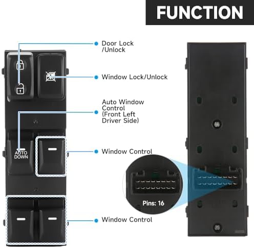 - Function - The master power window switch if it is cracked or broken will greatly affect privacy and safety, please replace it in time.Terminal connector for plug andplay style, just need to remove your original window control switch and install.