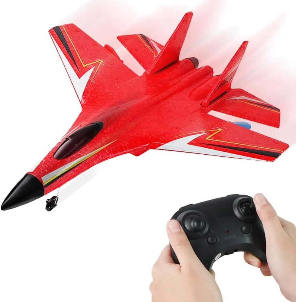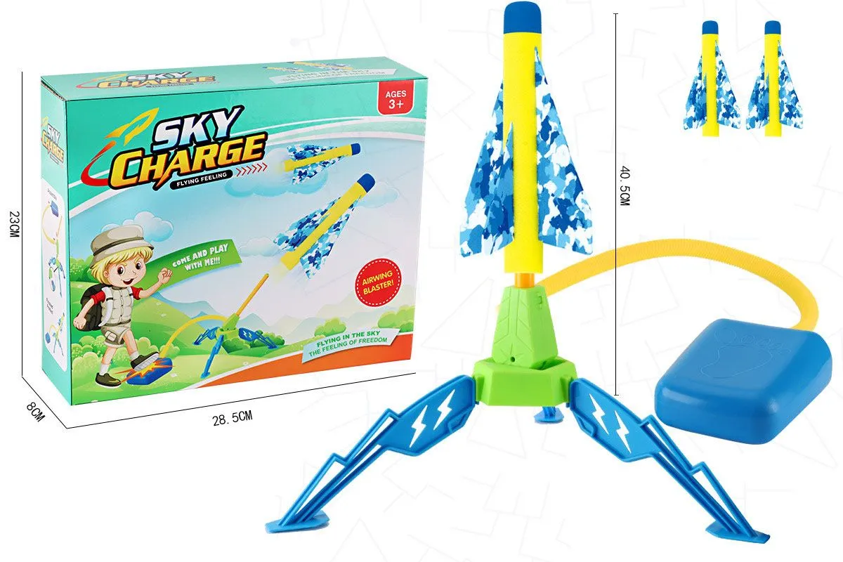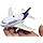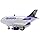 This stylized aircraft features electronic jet sound and flashing red lights, activated by the push of a button on top of the fuselage! Pull the plane back and let it go forward in the take-off position. Plastic construction. Approximately 5" long. Batteries included. Ages 3+
