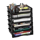 Yarebest 6 Pack Office Stackable Letter Tray, Plastic Stackable Paper Storage Basket Tray, Black