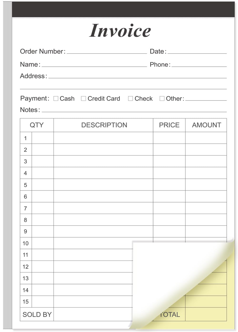 - Value Pack for small business owner, freelancer, or retail professional.Each book contains 50 sets of carbonless forms,our Invoice Book 2 Part Carbonless is an indispensable tool for managing sales efficiently. Invest in this practical solution today and enhance your business operations effortlessly!