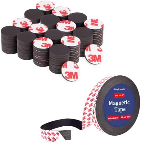 - PACKING INCLUDES: 1 roll of magnetic tape, measuring: 1/2" wide x 1/16" thick x 10 Feet long. And 120PCS small magnet dot,dia=20mm.