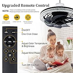 🌪️【E26 Base & Easy to Install】:Compared to traditional ceiling fans, installing this socket fan light with remote is as simple as replacing a light bulb, while also make it a true wireless ceiling fan. The E26 base is compatible with most bulb sockets.This socket light fan comes with a socket extender(3.66 inch), allowing it to be used in more scenarios without size limitations.If you need an easily removable fan light, then it will be perfect for you. 🌪️【Multiple Upgrades】:Compared with other socket fans, our light socket ceiling fan has very many advantages.①We have upgraded the appearance to make the lampshade more beautiful,make this mini socket fan more aesthetically pleasing to the home decor.②We upgraded the remote control,make it more durable, more sensitive, and longer remote control distance.③We upgraded the motor so that it has a higher rotation speed and brings stronger wind power. 🌪️【Color Temperature, Brightness, Wind Speed Adjustable & Size】:There is a disc (actually 4 buttons) on the remote control to control brightness and color temperature. This bulb fan has three color temperatures for you to choose(3500K~6500K). Below the disc is the wind speed setting, with four gears for you to choose. There is even a "ACL OFF" button, which can be pressed once to completely turn off the fan and lights.The size of this fan lamp is 12.2 inches * 5.12 inches. 🌪️【Quieter & Easier to Clean】:Our portable ceiling fan is equipped with silent fan blades while increasing the wind speed.(When working at low speeds, the sound is very low, while at high speeds, the motor is quiet, but there is a sound of blades swinging in the air.)Nevertheless, compared to other ceiling fans with light, the noise during operation is still softer. The fan blades are fixed by a knob and can be easily disassembled for easy cleaning and reinstallation. 🌪️【After-Sale Service】:We will provide you with high-quality service,you can buy at ease. And If you have any questions please feel free to contact us.(eg:Can't use it,package breakage,etc.)We will definitely give you a satisfactory solution,and solve the problem for you as soon as possible. Thank you very much for your valuable comments!We will do our best to provide customers with the most satisfactory shopping experience.Welcome to visit again.