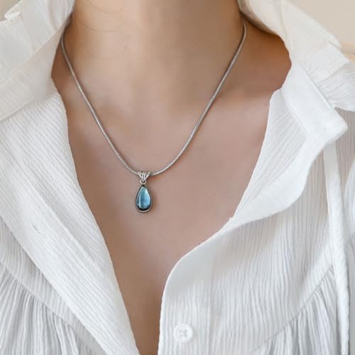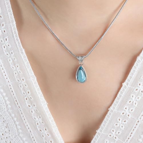 Blue Necklace for Women Tear Drop Pendant Silver Chain Simple Everyday Necklace Jewelry (Water Drop)