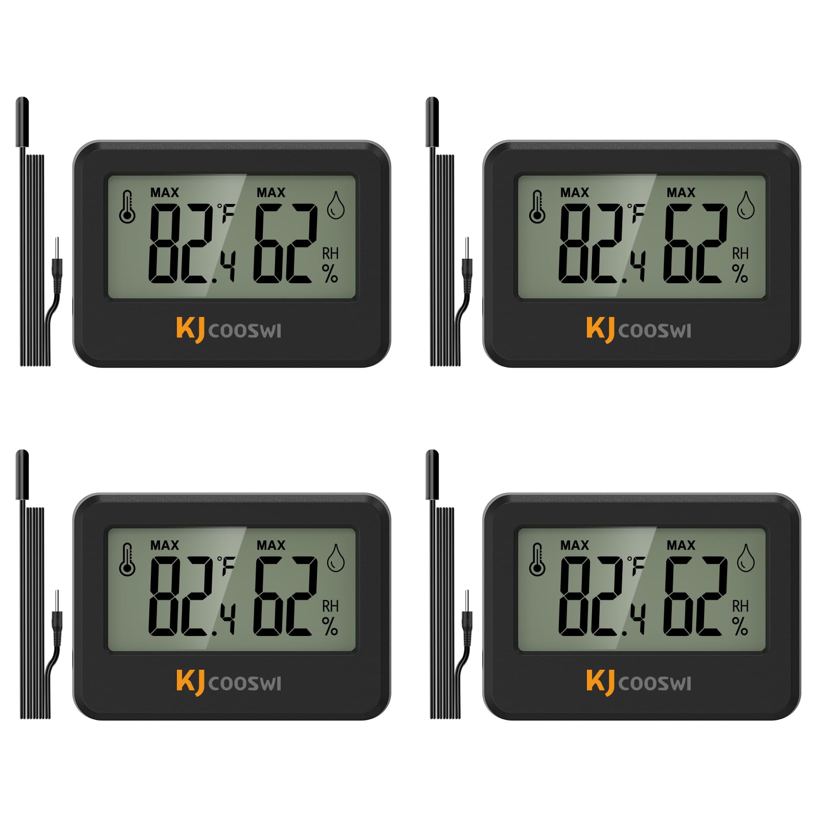 4PCS Mini Digital Hygrometer and Thermometer Reptile Thermometer with Extend Probe (Only Temperature) Indoor Temp and Humidity Meter with Magnet