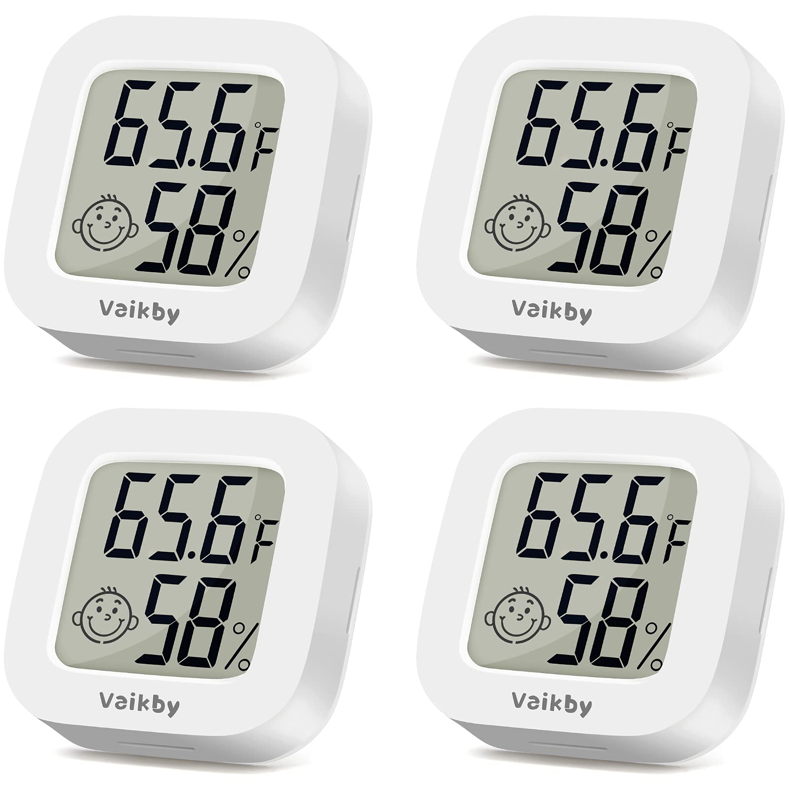 - 12-18 Months Long-life Batteries: Each small temperature and humidity gauge is powered by one long-life CR2032 button cell battery, easy to buy and replace, which is already installed in the thermometer humidity monitor.