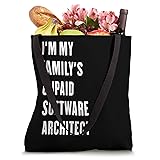 i'm my family's unpaid Software Architect outfits. 16” x 16” bag with two 14” long and 1” wide black cotton webbing strap handles. Made of a lightweight, spun polyester canvas-like fabric. All seams and stress points are double-stitched for durability, and the reinforced bottom flattens to fit more items and hold larger objects. Spot clean/dry clean only.