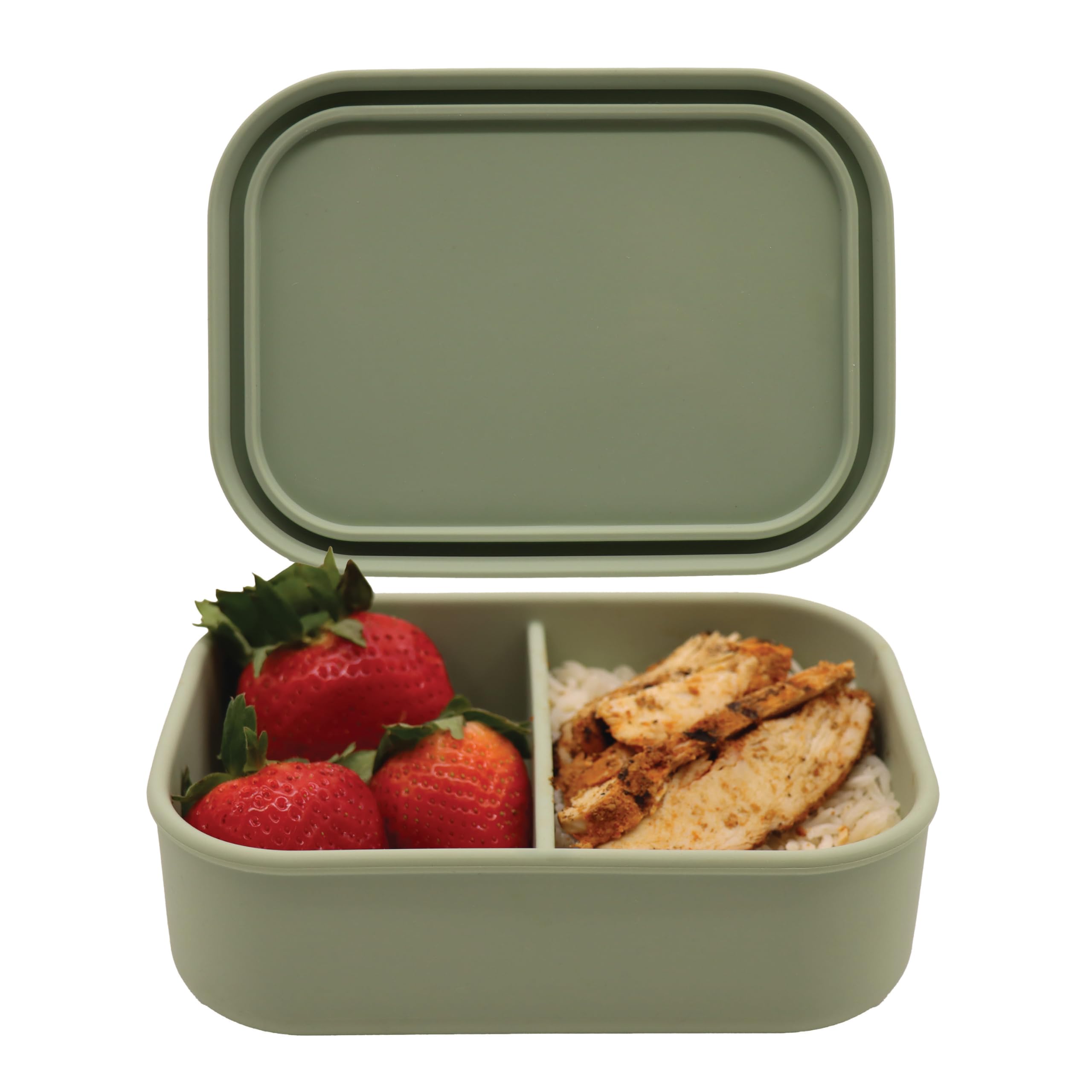Silicone Bento Box, 3 Removable Compartments, BPA-Free, Leak-Resistant, Dishwasher and Microwave Safe, Perfect for Work, Travel & Meal Prep, (Green)