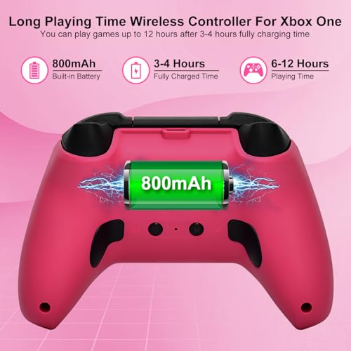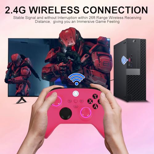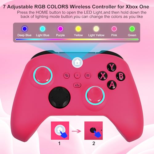 HaeBorl Xbox One Controller, RGB LED Light 2.4GHz Wireless Controller Compatible with Xbox One X/S Xbox Series X/S with 3.5mm Audio Headphone Jack & 800mAh Rechargeable Built-in Battery, Deep Pink