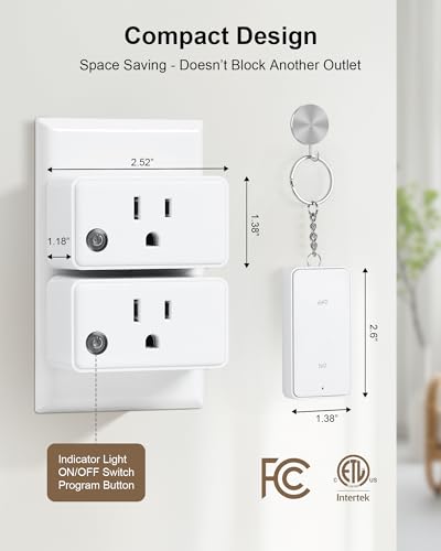 - Easy to Use, Instant ON and OFF - Plug and play! Remotely turn on/off lighting fixtures, lamps, hard-to-reach devices with just a click. No getting up or walking around in the dark, making everyday convenience effortless. Keychain remote offers easy hanging and storage.