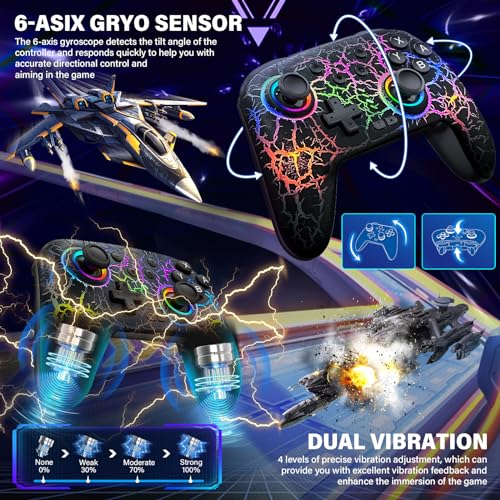 - 6-AXIS GYRO SENSOR & ADJUSTABLE DUAL VIBRATION: This switch pro controller with 6-axis gyroscope can detect the tilt angle of the controller and respond quickly, helping you perform precise directional control and aiming in the game. Switch 2 controller built-in dual vibration motors with 4-level vibration feedback: none, weak, medium and strong.which provide you excellent vibration feedback to enhance the game immersion. This switch controllers pro will be the best choice for you