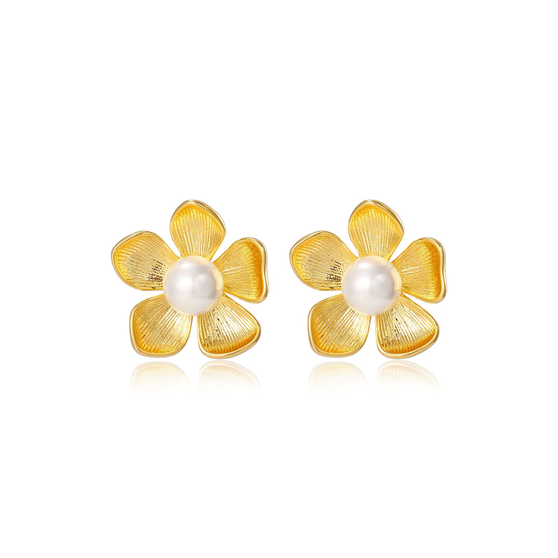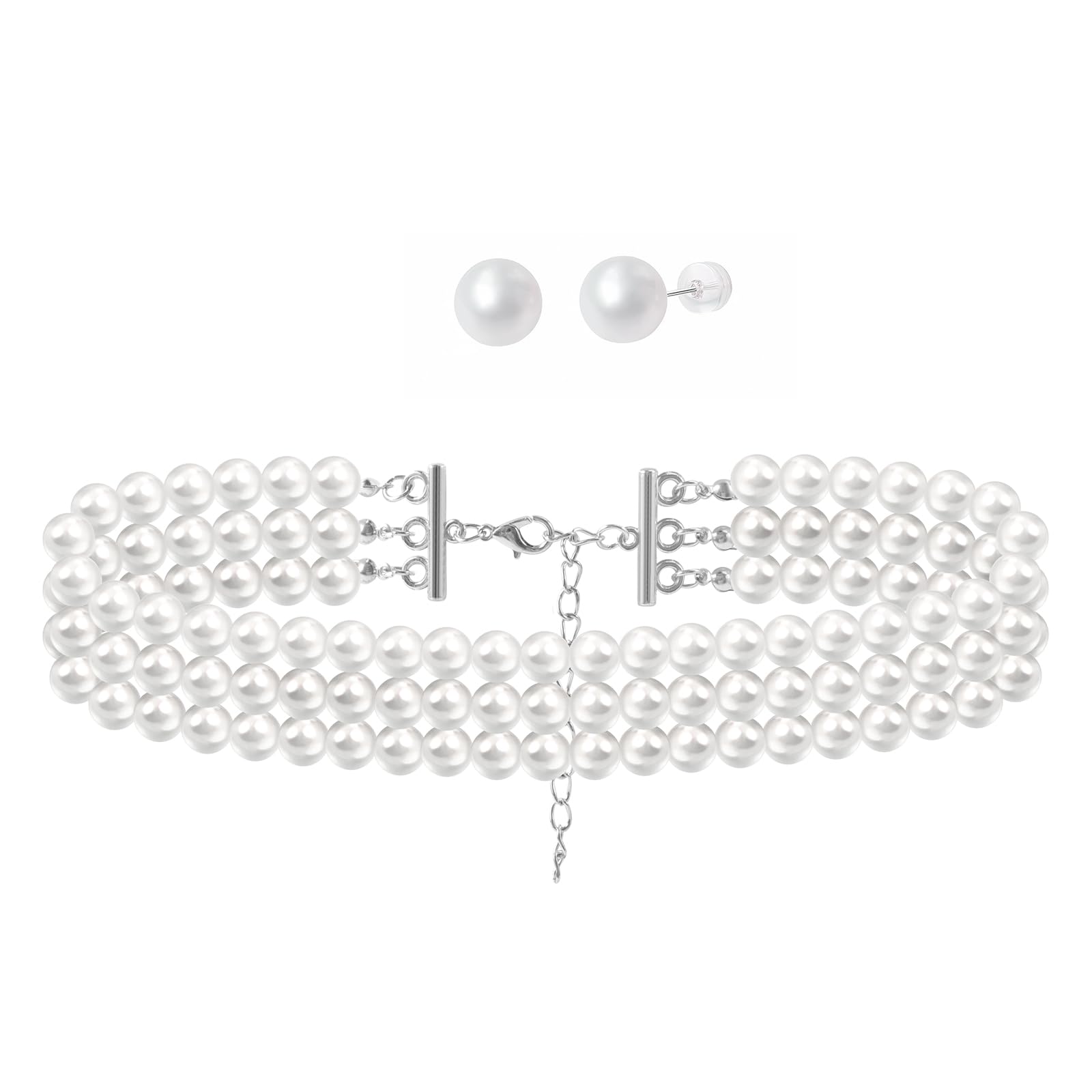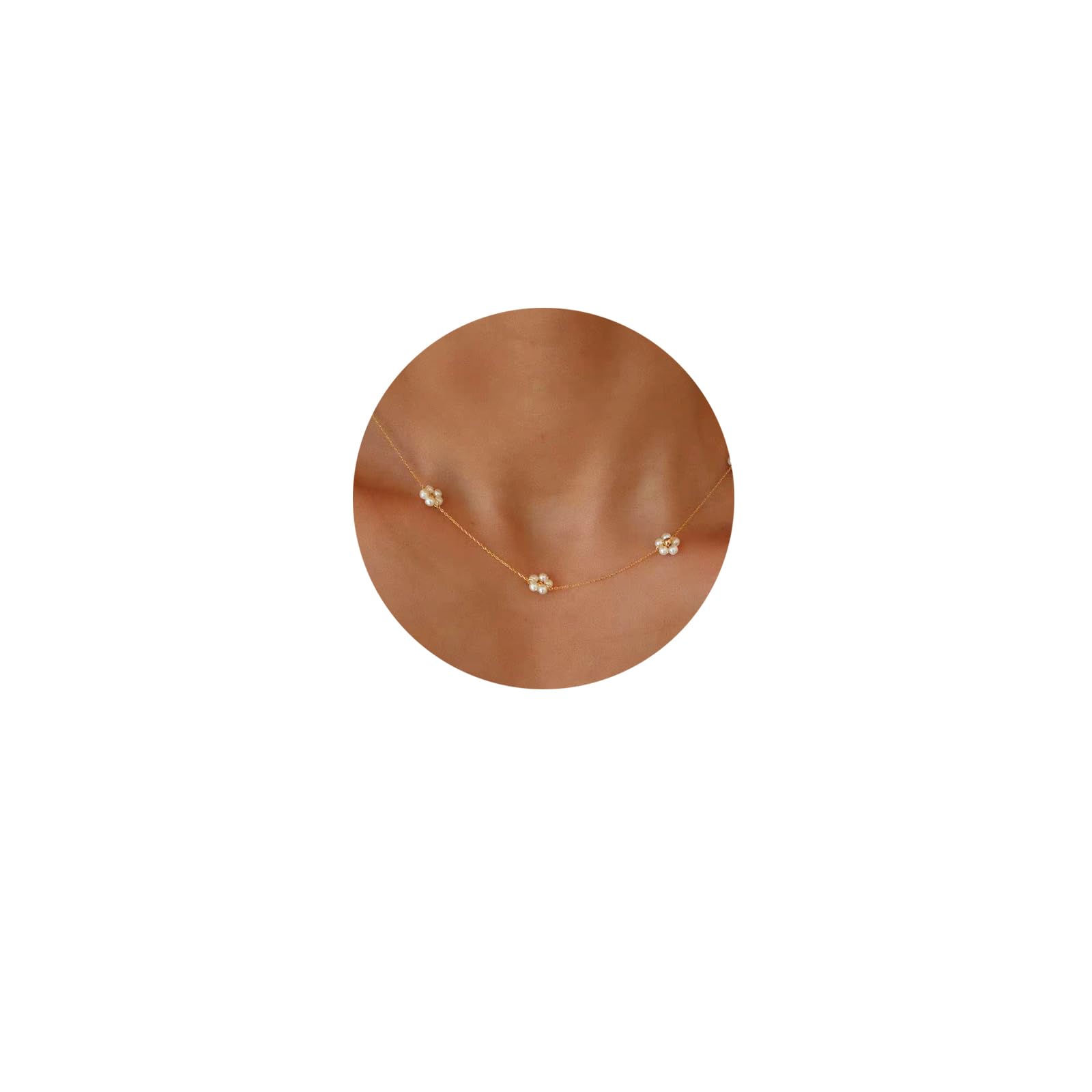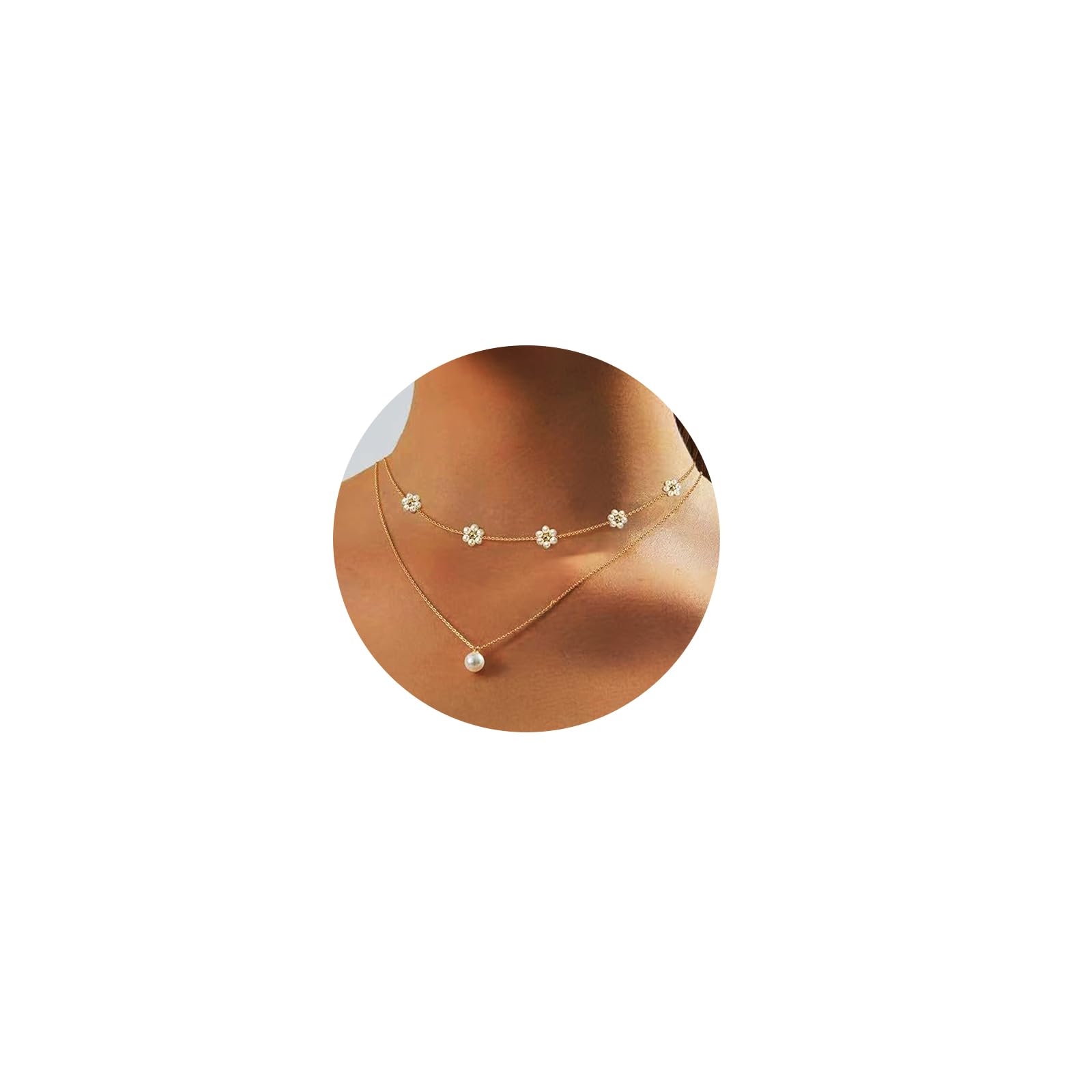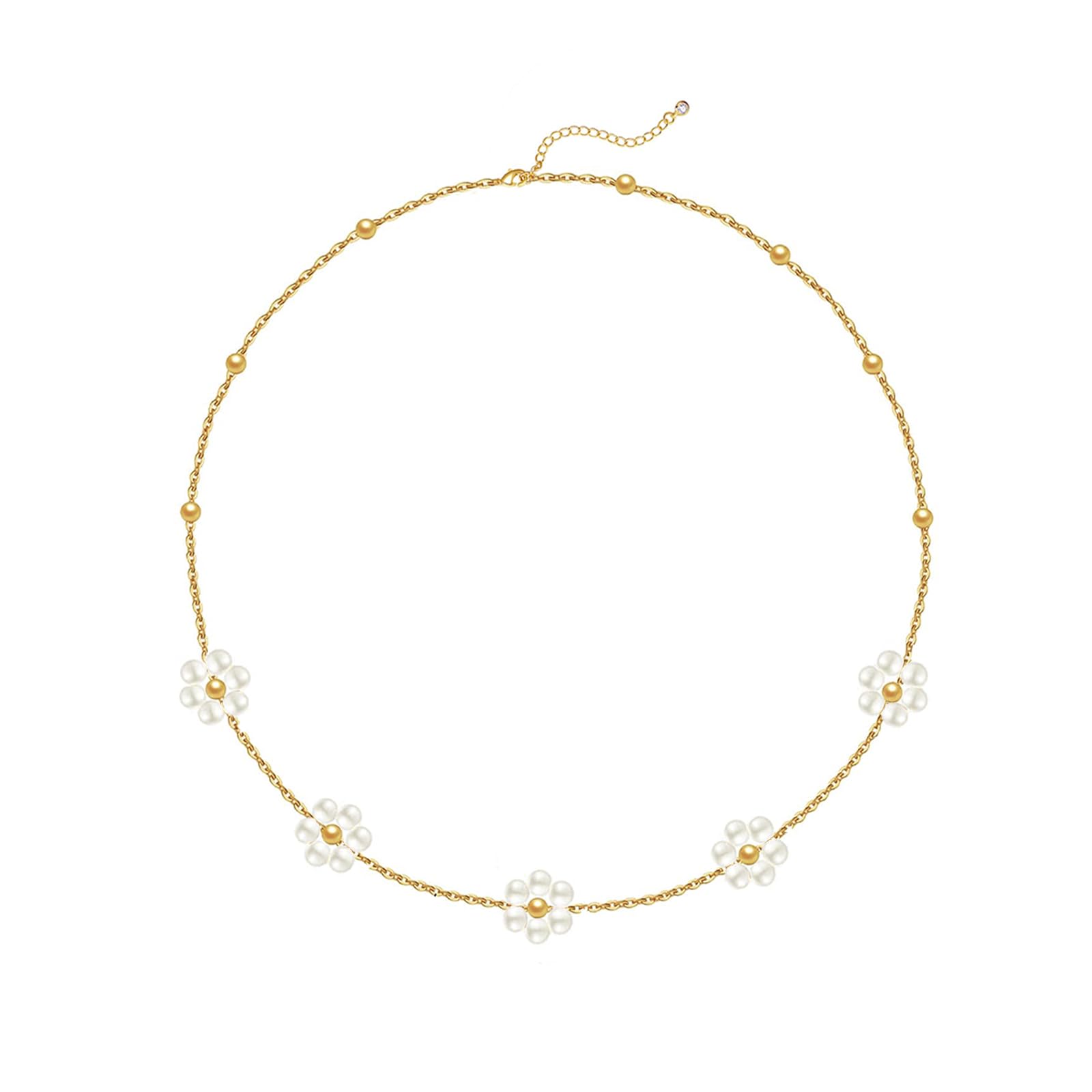 Pearl Necklaces for Women, 14k Gold Plated Dainty Cute Pearl Simple Flower Choker Trendy Short Gold Necklace Jewelry for Women
