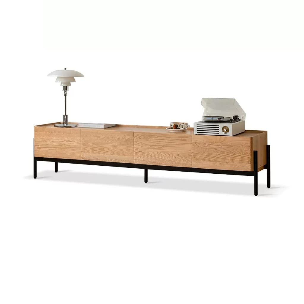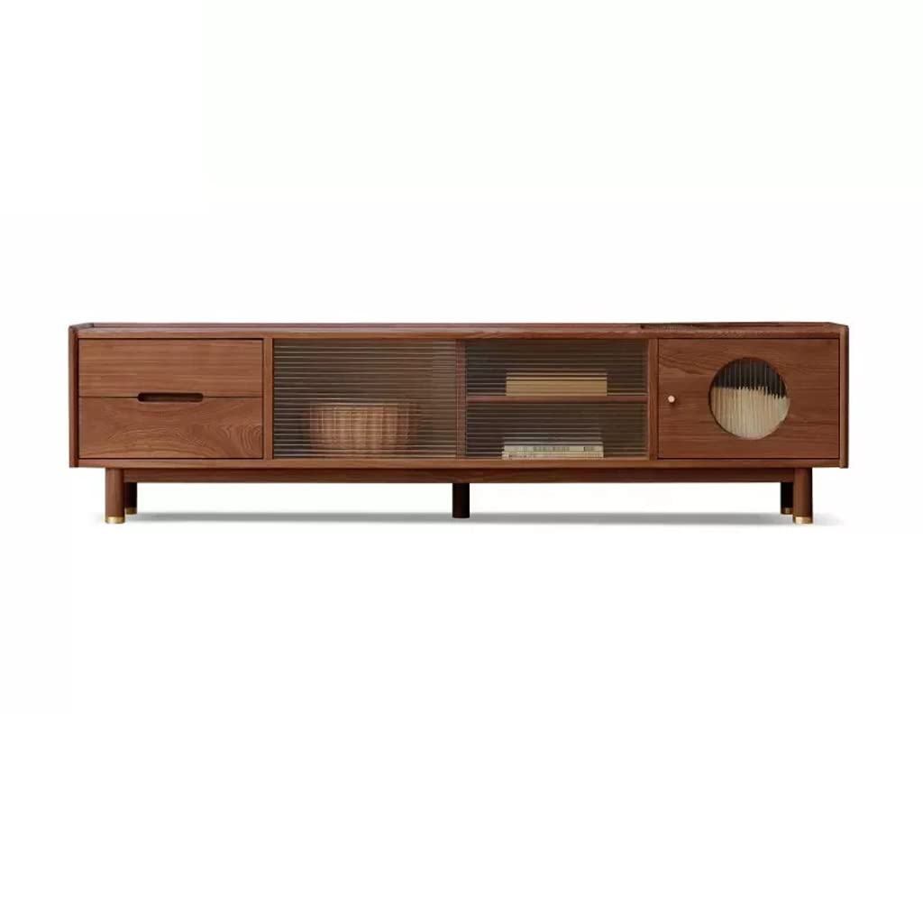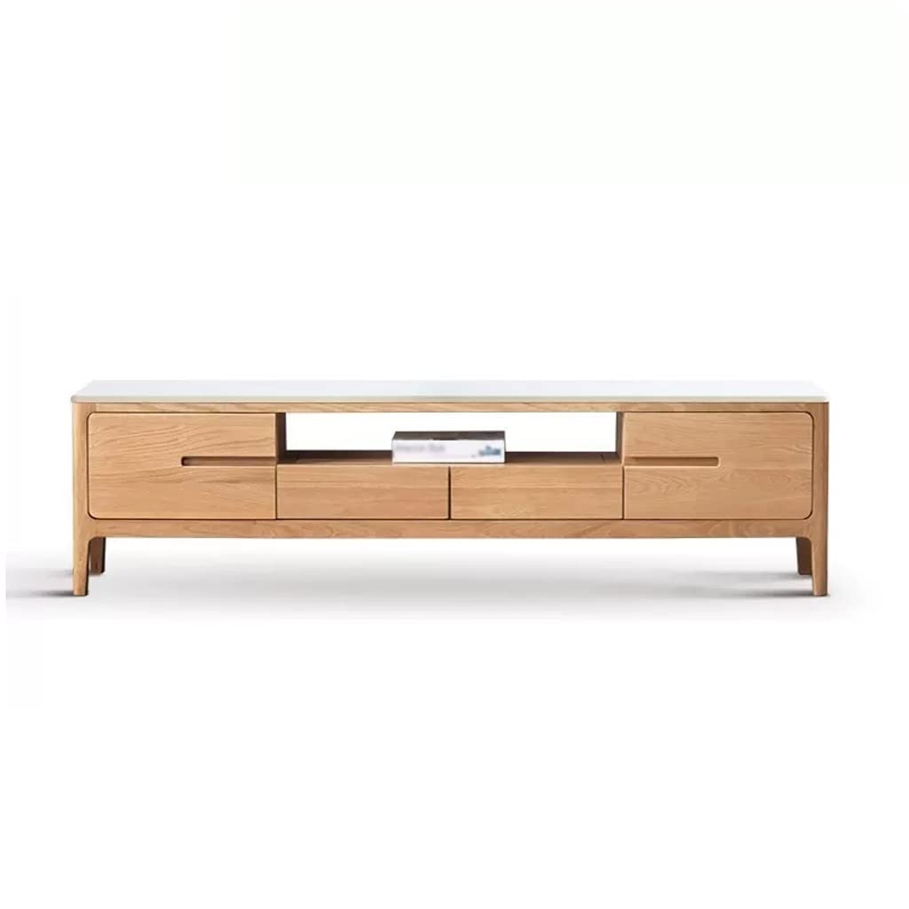 - The TV cabinet is made of solid wood, which has strong load-bearing capacity and is stable and not easy to shake. This TV entertainment center is equipped with soft-close hinges, which will not squeeze or make noise when closed.