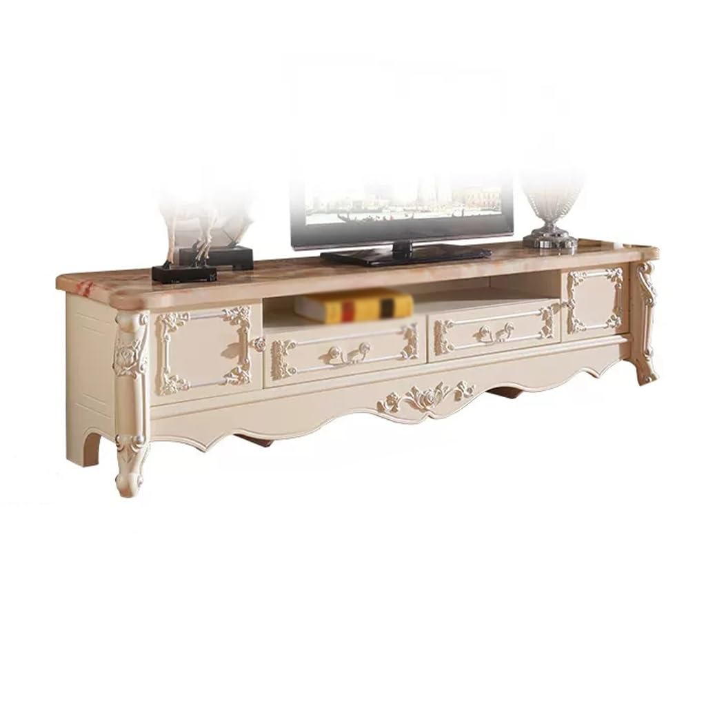 Entertainment Center Slate Marble Countertop TV Cabinet with 3 Storage Drawers and Glass Sliding Door Nordic Living Room Storage Cabinet TV Stands for Living Room, Medium
