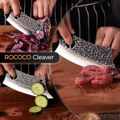 ROCOCO 6.3" Cleaver Butcher Knife Sharp Full Tang Knife with Sheath for Home Outdoor BBQ Camping Mother Father Gift Idea Men