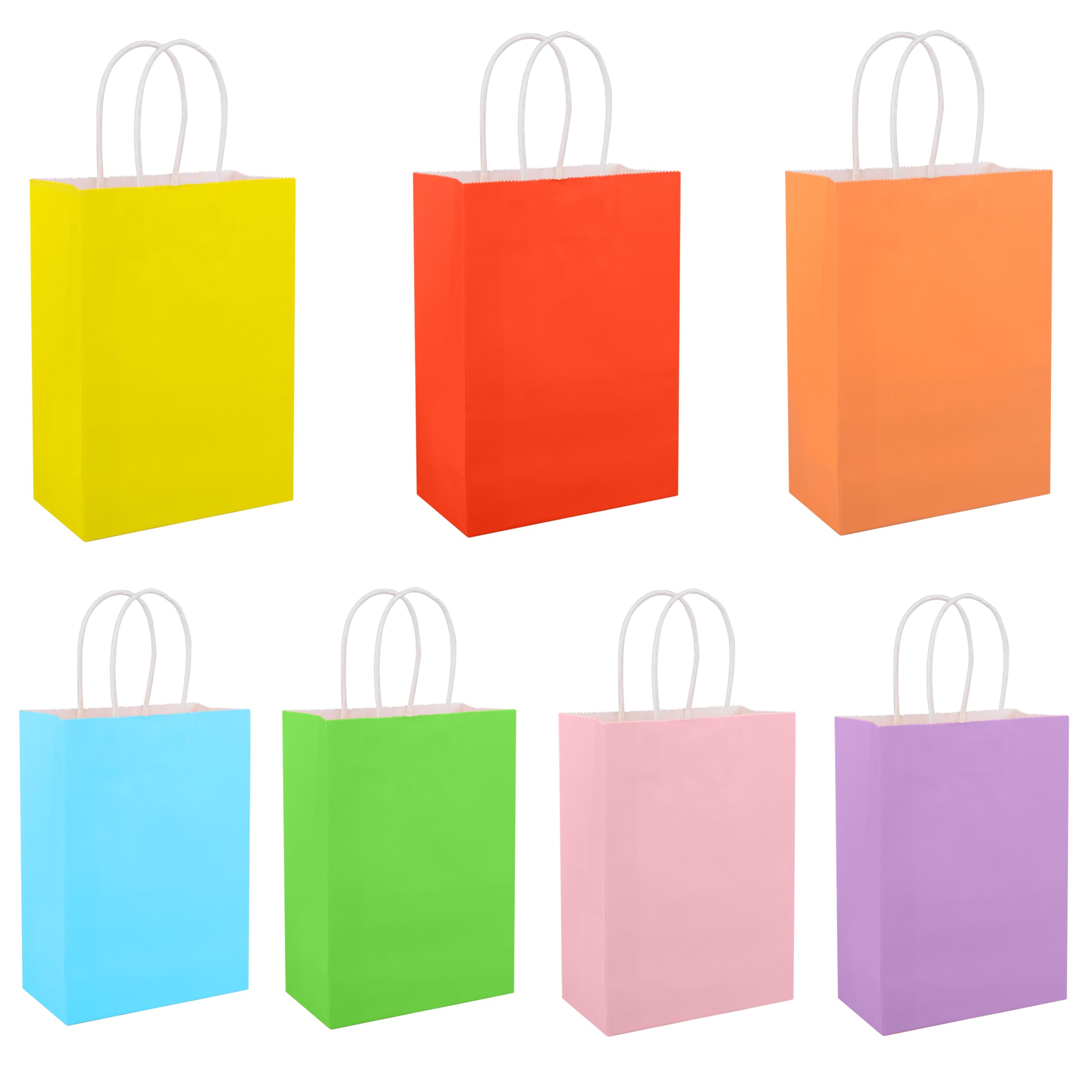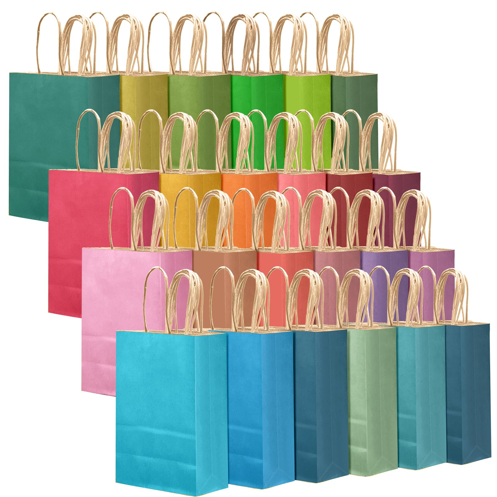 Cegzer 50 Pcs Paper Gift Bags, 5.9x3.15x8.26 Inch Colorful Kraft Paper Party Favor Bags with Handles for Wedding, Kids Birthday, Retail Shopping, Party Favors Bags